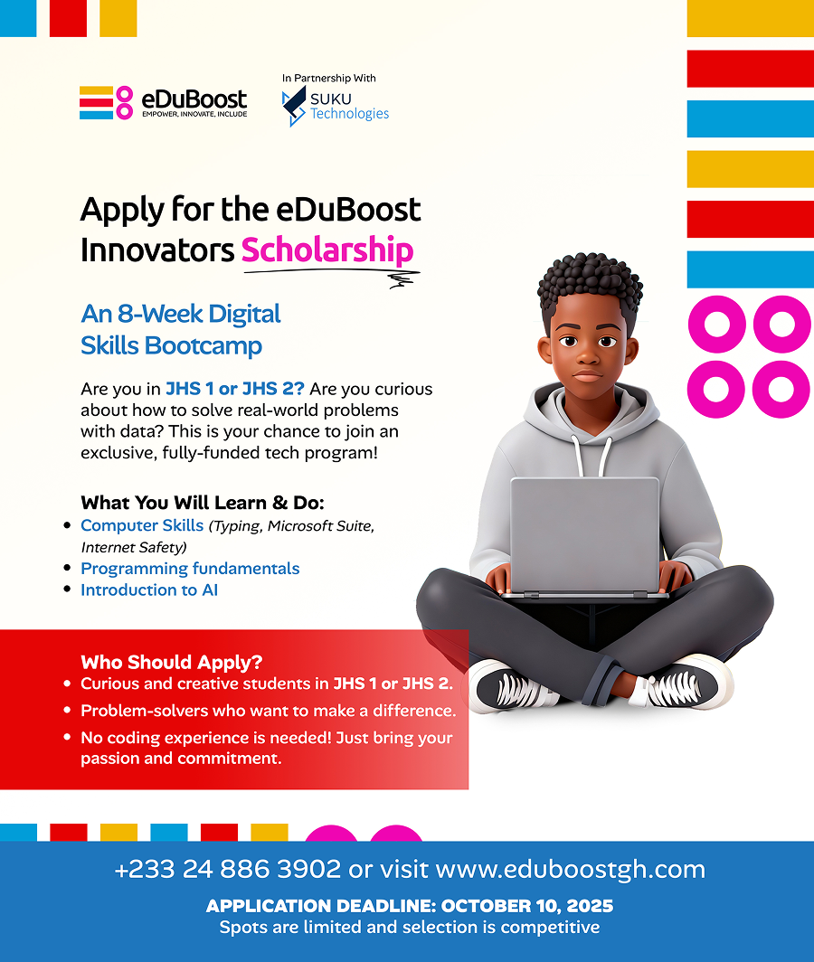 Are you in JHS 1 or JHS 2? Do you want to learn the essential tech skills that will help you succeed in school and in the future? This is your chance to join an exclusive, fully-funded tech program!